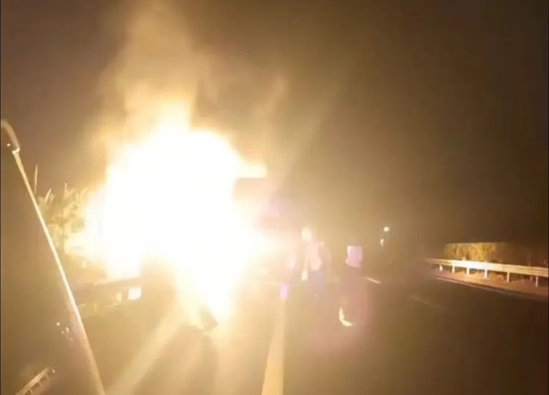 然而,一场突如其来的灾难打破了这份宁静。一辆停靠在路边的大货车突然起火,熊熊烈焰在黑夜中肆意蔓延,将货车瞬间吞噬,空气中弥漫着刺鼻的焦糊味。