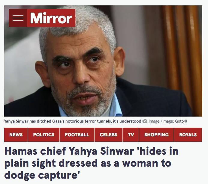 该报道还称,自那以后,辛瓦尔“一直试图身着女装,混入人群”,所以没有被以色列无人机发现。