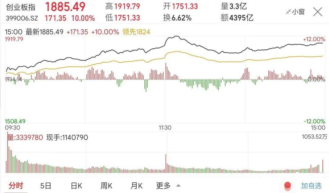配资炒股配资平台知名 疯涨10%!创业板指成交破历史天量
